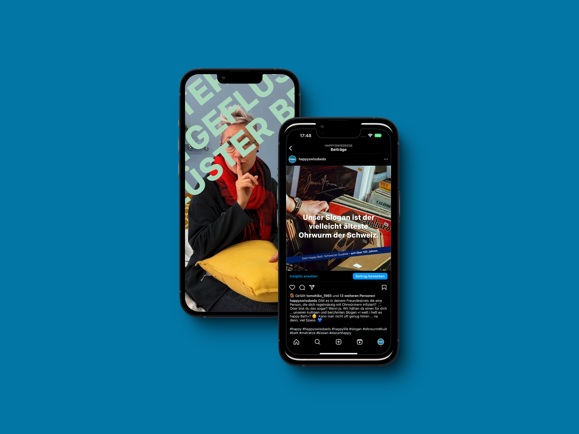 Für den Schweizer Matratzenhersteller habe ich zahlreiche Social-Media-Posts von A bis Z umgesetzt, inklusive Bildbearbeitung und passender Caption. Eines meiner Highlights war die Umsetzung der Videoreihe «Bettgeflüster», in der happy Mitarbeitende zu Wort kommen – authentisch und sympathisch.